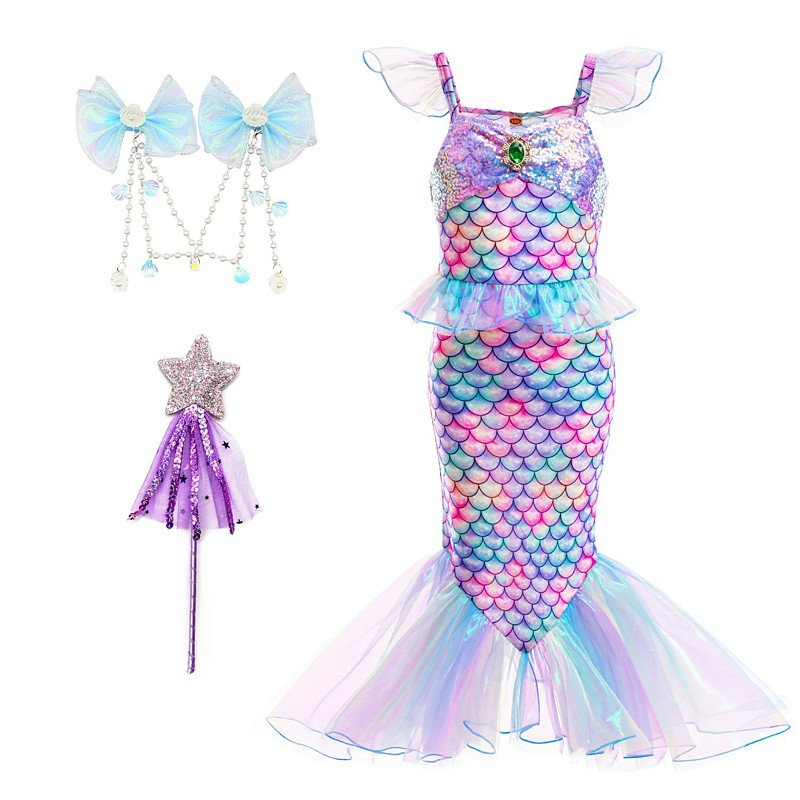 The Little Mermaid Little Mermaid Mermaid Tail Aqua Princess Dress Halloween Dress Cosplay Costume Theme Party Costume Cosplay Movie Cosplay for Girls' Kid's Carnival Masquerade