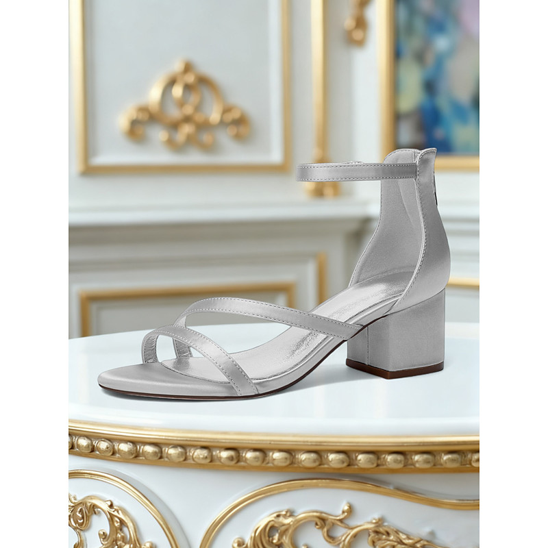 Women's Satin Block Heel Sandals with Ankle Strap - Elegant Open Toe Dress Shoes for Cocktail Party and Evening Outfits
