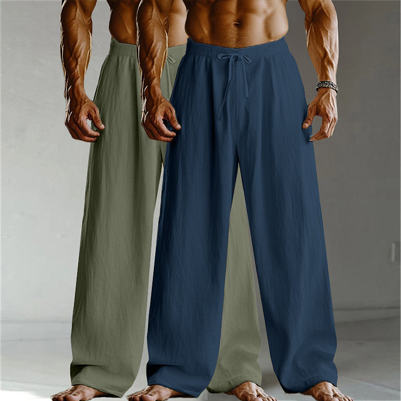 Men's Linen Pants Trousers Summer Pants Baggy Pants Beach Pants Drawstring Elastic Waist Straight Leg Plain Comfort Breathable Full Length Casual Daily Holiday Vacation Fashion Blue 1# Black Inelastic