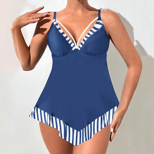 Per donna Tankini arricciato Costume da bagno 2 pezzi Color-blocking Elastico Senza Maniche Costume da Bagno Controllo della Pancia Surf Spiaggia Vacanze Estate