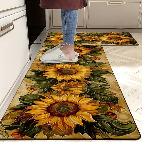 Lange Küchenmatte der Sonnenblumen-Serie – rutschfester, schmutzabweisender und saugfähiger Teppich für den Eingangsbereich Heimgebrauch