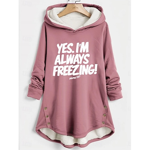 Damen Kapuzenpullover Grafik Buchstabe Warm Lässig Flauschig Langarm Mit Kapuze Lange Oberteile Lässig Sport Druck Rosa Blau Grau Herbst Winter