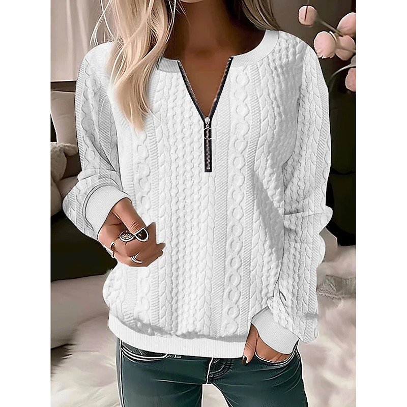 Women's Sweatshirt Pullover Casual Textured Plain Dailywear Crew Neck Quarter Zip Long Sleeve Black White Red Gray Fall Winter