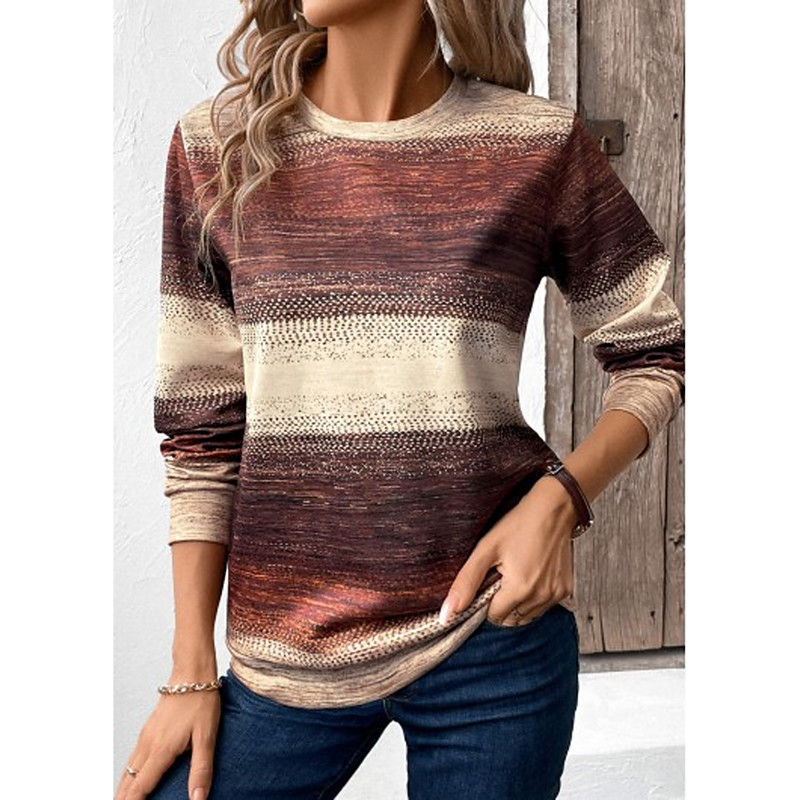 Women's T Shirt Ombre Graphic Geometric Fashion Stylish Classic Long Sleeve Crew Neck Round Neck Regular Tops Daily Weekend Print Purple Brown Green Summer Spring Fall