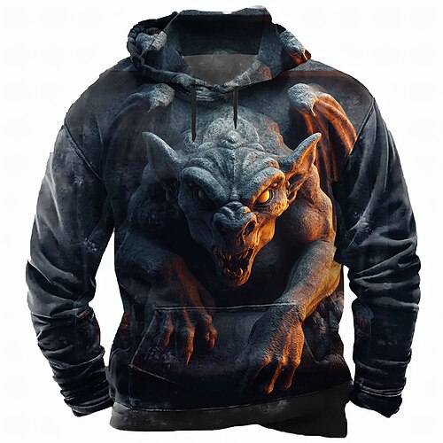 Per uomo Drago Felpa con Cappuccio Felpa Cool Festa Manica Lunga Girocollo Club Abbigliamento casual alla moda Rosso Arancione Verde Coulisse Autunno Inverno progettista S M L XL XXL XXXL