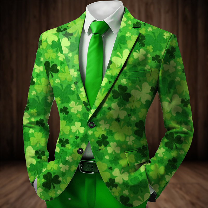 St. Patrick Men's Shamrock Blazer Jacket Coat Fashion Comfortable Breathable Artistic Casual Daily Party Evening Wear Festival Pocket 3D Print Buttons All Seasons Notch Long Sleeve Green 1# Light