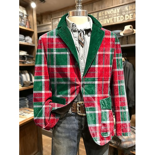 Per uomo Giacca blazer Affari Festa serale Abbigliamento quotidiano Tasca Autunno Inverno Poliestere Plaid A scacchi Stile Artistico Caldo Monopetto due bottoni Giacca Nero Marrone Verde