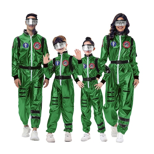 Costume di Coppia Gruppo Astronauta Costume Cosplay Costume Tuta Tuta Arancione per Giorno dei Re Halloween Carnevale Adulti Bambini Unisex