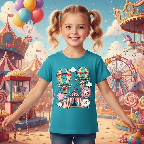 Costume di Carnevale 2026 Ragazze 3D Grafico Cartoni animati Maglietta Manica Corta Stampa 3D Estate Primavera Sport Moda Streetwear Bambini 4-12 Anni Girocollo Casuale Quotidiano All'aperto