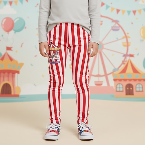 Costume di Carnevale 2026 Ragazze 3D Grafico A righe Pantaloni Leggings Stampa 3D Primavera Autunno Streetwear Essenziale Collant Bambini 4-12 Anni Casuale Quotidiano All'aperto Vestibilità regolare