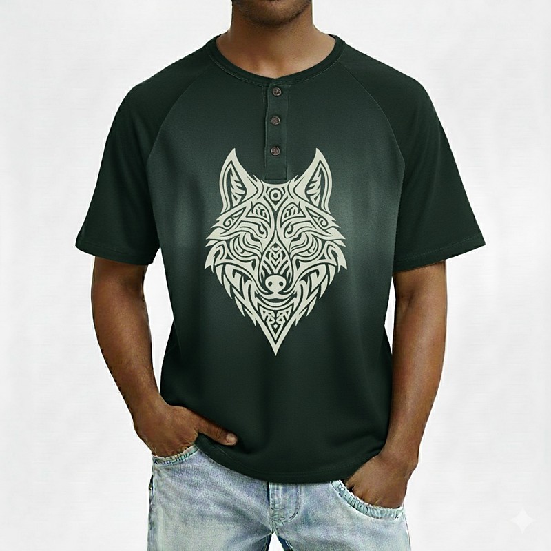 Men's Wolf Viking Henley Shirt Short Sleeve Fashion Designer Retro Vintage Daily Outdoor Spring Fall All Seasons Brown Dark Blue Dark Green Henley Henley T-Shirt