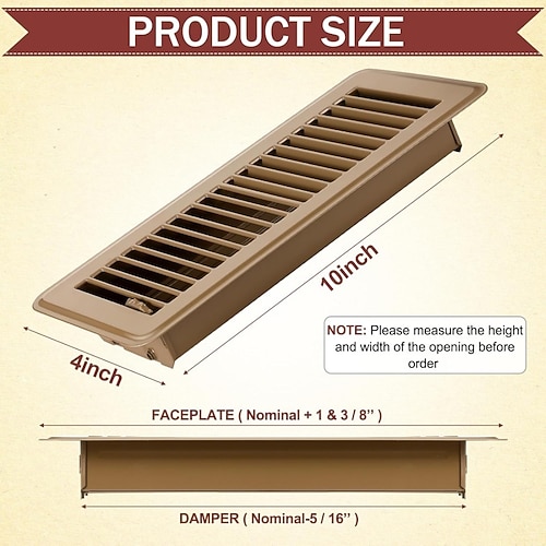 Hochleistungs-Bodenlüftungsregister (10 x 25 cm) – begehbares Seitenwand-Bodenregister mit Premium-Finish und leicht einstellbarem Luftzufuhrhebel für die Installation zu Hause, im Büro oder an der