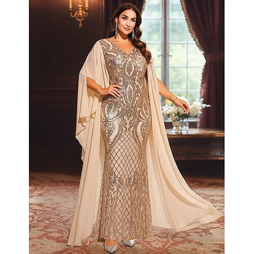 Abiti a sirena tromba taglie forti abito elegante curve abito formale da matrimonio lunghezza fino al pavimento maniche corte scollo a V pizzo senza schienale con paillettes