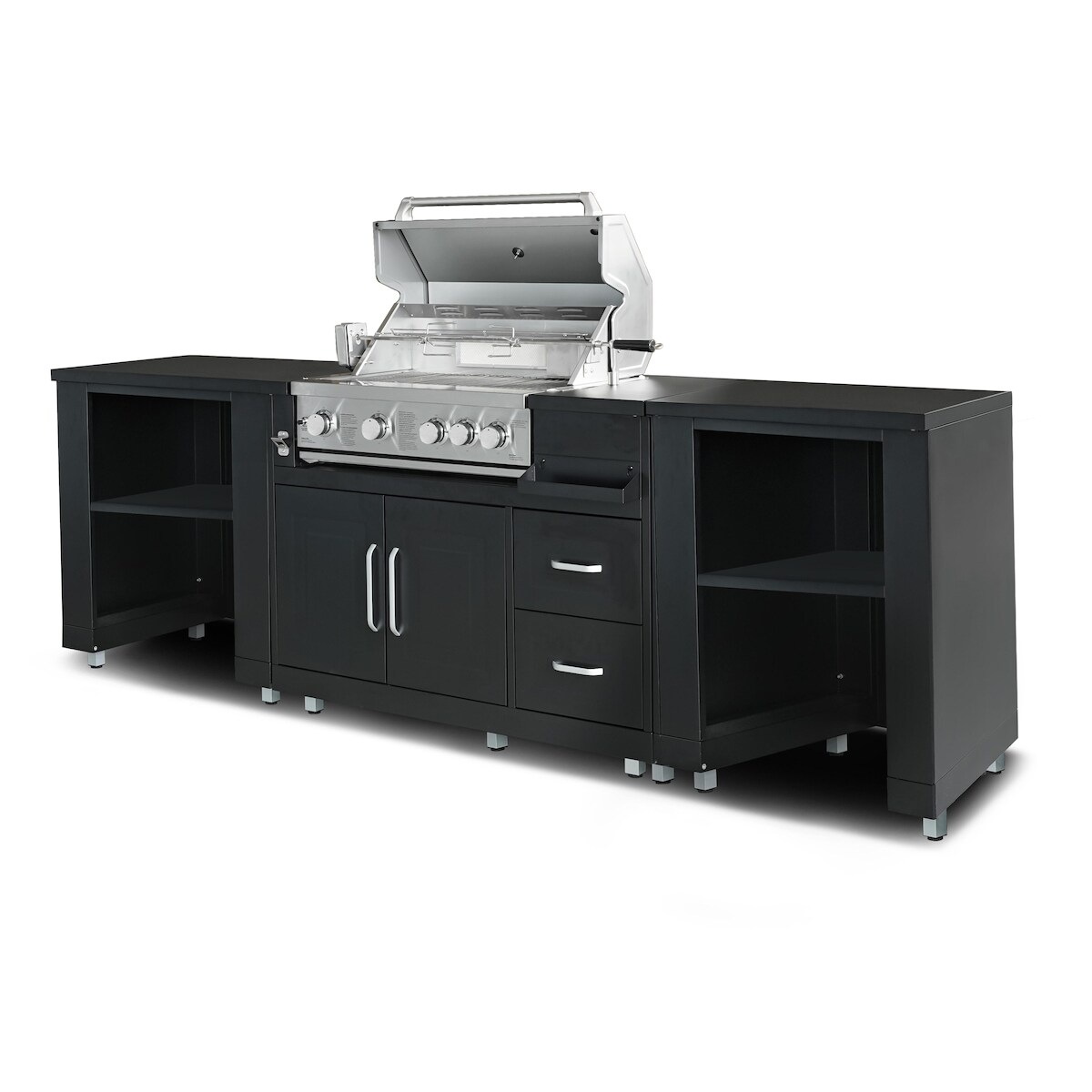 Utendørs grill lysthus – dobbelttak, sidehyller, metallkurv