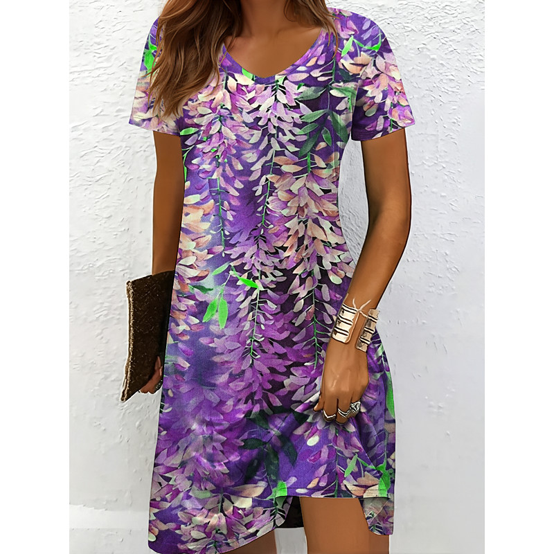 Women's Midi Dress Casual Dress T Shirt Dress Tee Dress Sundress A Line Dress Vacation Casual Beach Beach Regular Fit Floral Graphic Leaf Short Sleeve V Neck Yellow Pink Blue Purple Summer Spring