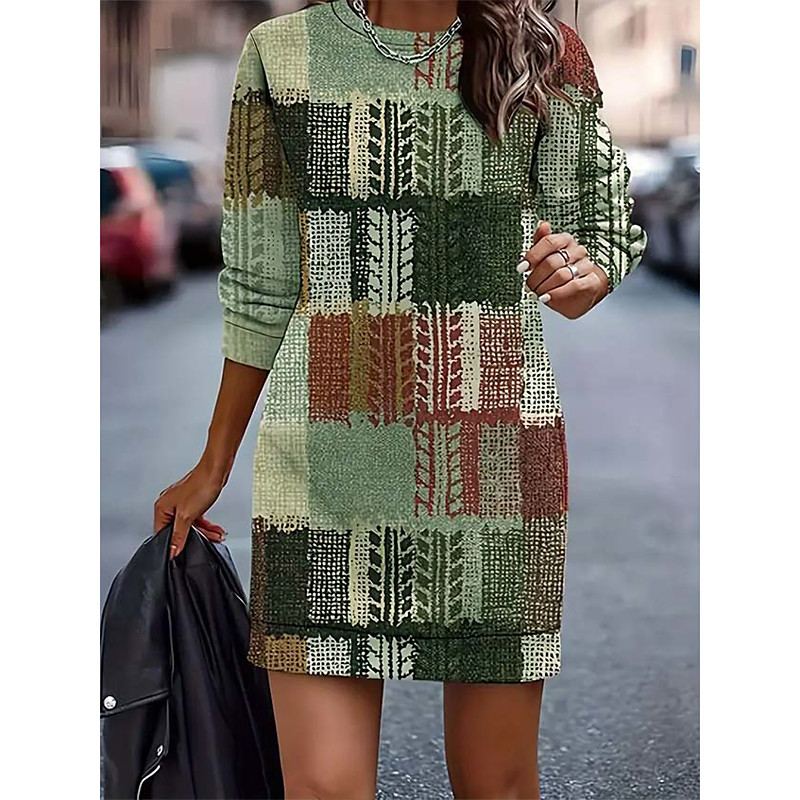 Women's Sweater Dress Mini Dress Shift Dress Party Casual School Formal Outdoor Regular Fit Floral Graphic Plaid Long Sleeve Crew Neck Red Blue Green Gray Spring Fall Winter