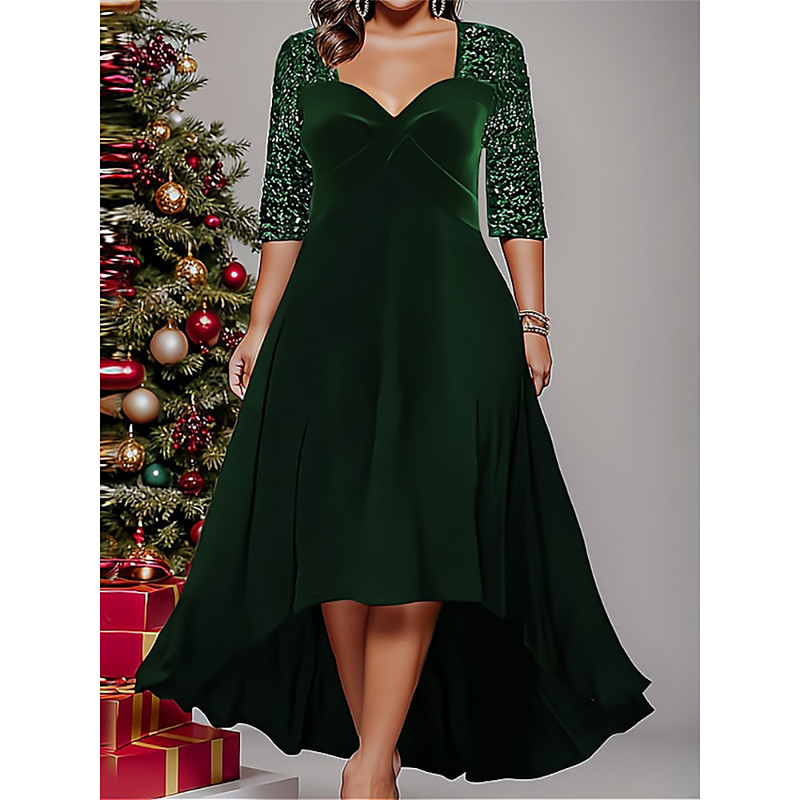Women's Plus Size Sequin Dress Solid Color V Neck 3/4 Length Sleeve Spring Fall Elegant Midi Dress Party Wedding Guest Dress