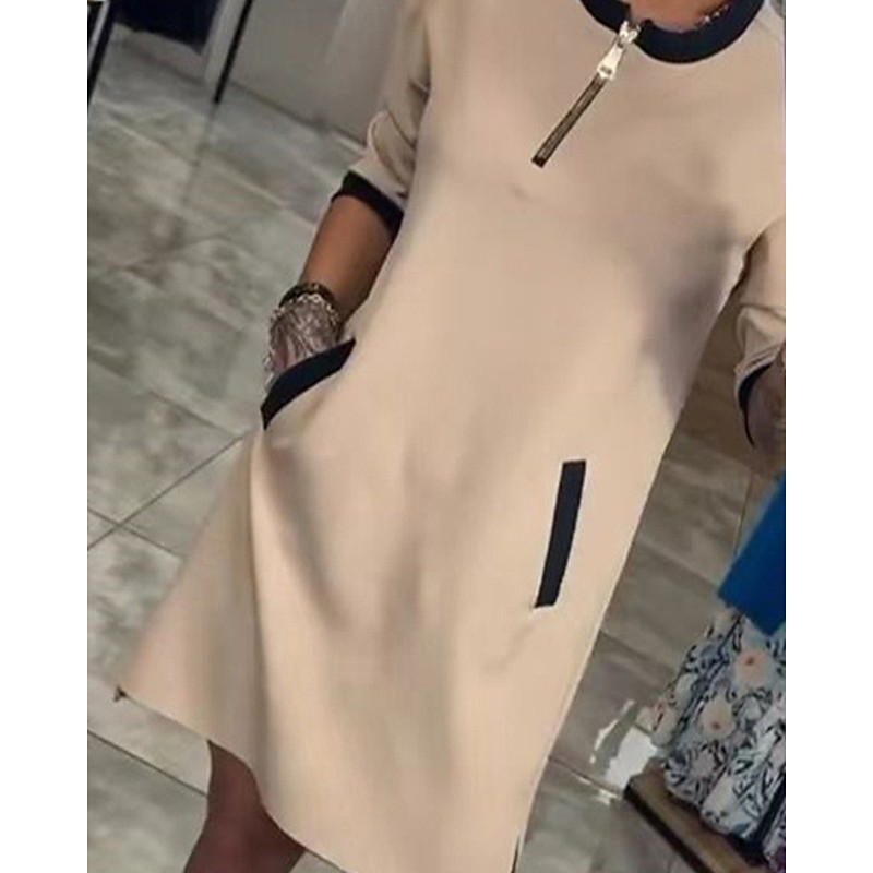 Women's Mini Dress Casual Dress Modern Daily Going out Weekend Regular Fit Color Block 3/4 Length Sleeve V Neck Black White Khaki Gray Spring Fall