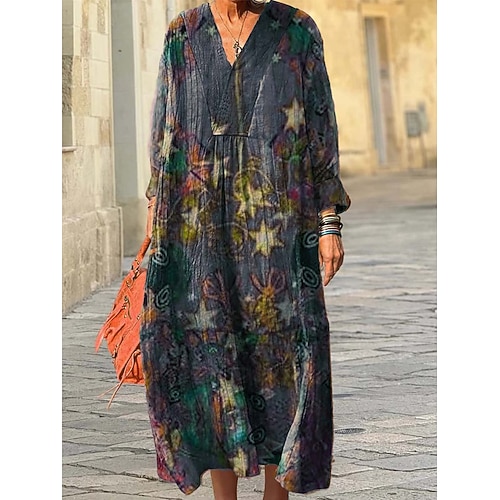 Per donna Abito Midi Abito a trapezio Vacanza Casual Quotidiano Vestibilità regolare Grafico Astratto Manica Lunga Scollo a V Rosso Blu Viola Verde Autunno Inverno