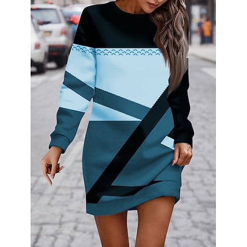 Per donna Mini Abito Abito in maglia Abito a Tubino Casual Boho Scuola All'aperto Casa Vestibilità regolare Grafico Geometrico Manica Lunga Girocollo Bianco Blu Viola Verde Primavera Autunno Inverno