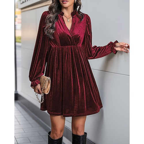 Per donna Mini Abito Abito in Velluto Vestito da Festa Elegante Moda Moderno Feste Occasione speciale Vestibilità regolare Semplice Manica Lunga Scollo a V Blu Vino Arancione Verde Autunno Inverno