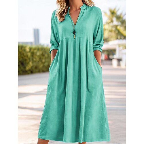 Per donna Bianco Blu Verde Estate Primavera Autunno Abito Midi Abiti ispirati al lino Vestito Casual Abito in cotone e lino Essenziale Classico Casual All'aperto Vacanza Quotidiano Vestibilit