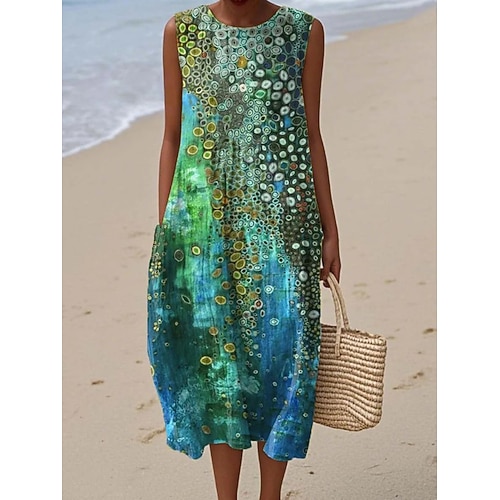 Per donna Abito Midi Vestito Estivo Abito a Tubino Abito a trapezio Vacanza Casual Boho Spiaggia Feste Uscire Vestibilità comoda Floreale Grafico Senza Maniche Girocollo Blu Azzurro cielo Verde