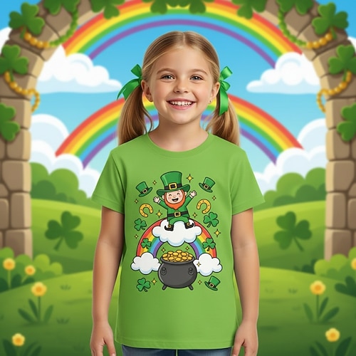 St. Patrick's Day Mädchen 3D St. Patricks Day St. Patricks Elfe T-Shirt Kurzarm 3D-Druck Sommer Frühling Sport Mode Streetwear Kinder 4-12 Jahre Rundhalsausschnitt Lässig Täglich Outdoor Normale