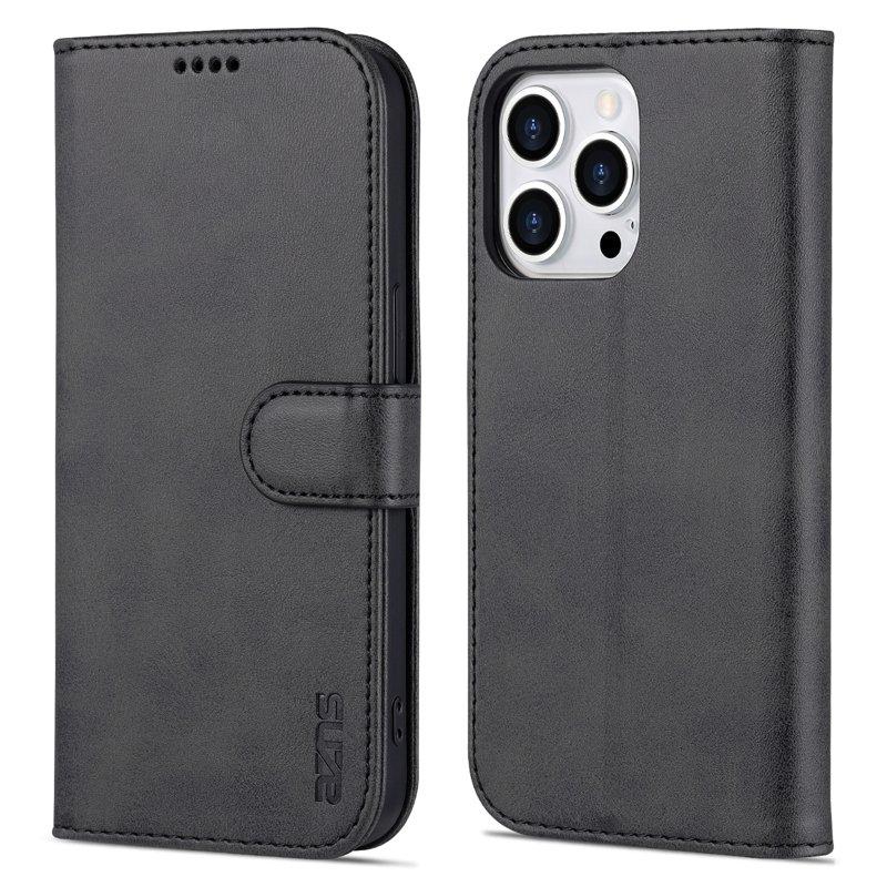 AZNS iPhone 16 Pro Max Plånboksfodral Konstläder - Svart