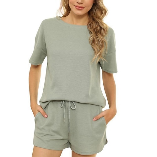 Per donna Set da due pezzi Set di Pantaloncini Manica Corta Girocollo Semplice Moda Streetwear Casuale Quotidiano All'aperto Nero Rosa Rosso Estate Vestibilità regolare