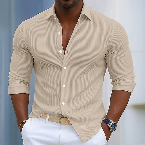 Per uomo Camicia Camicia di Velluto a Coste Camicia con Bottoni Nero Bianco Blu marino Blu Viola Manica Lunga Semplice Collo ripiegato All'aperto Vacanza Bottonato Abbigliamento Cotone Moda