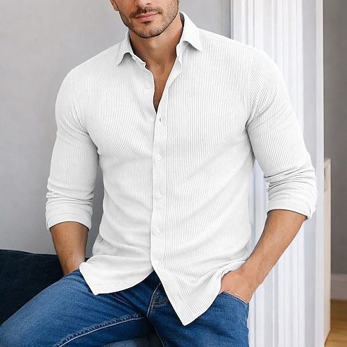 Per uomo Camicia Camicia di Velluto a Coste Camicia con Bottoni Blu Nero Bianco Blu marino Verde Manica Lunga Semplice Collo ripiegato Casuale Quotidiano Bottonato Abbigliamento Moda Streetwear
