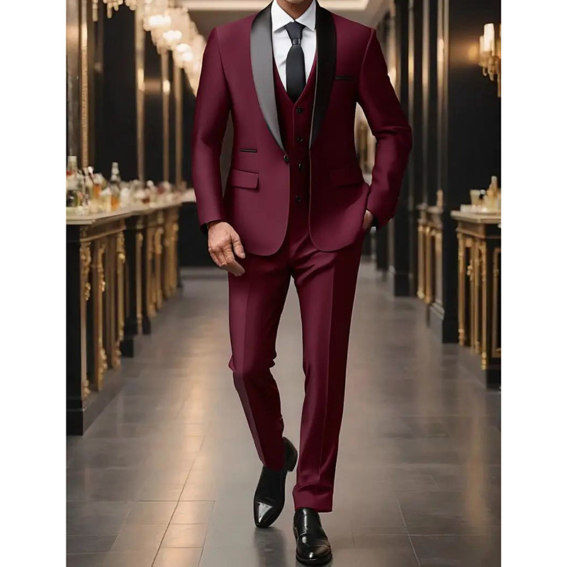Black White Burgundy Men's Wedding Party/Evening Suits Solid Colored 3 Piece Formal Standard Fit Single Breasted One-button