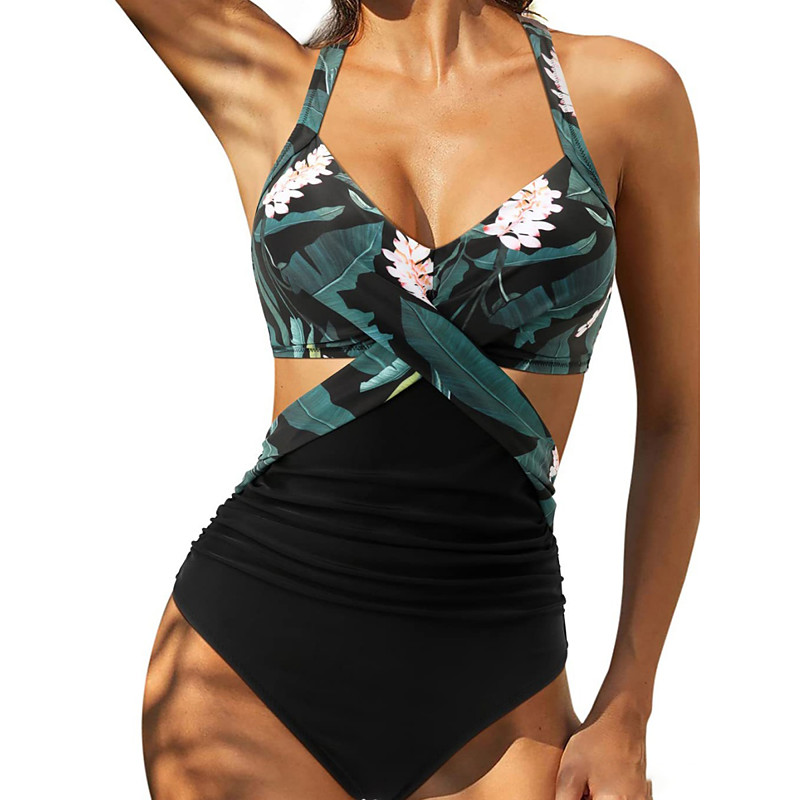 Women's One Piece Swimsuit Slimming Monokini High Cut Tummy Control High Waist Slim Backless Vacation Vintage Floral Graphic U Neck Sleeveless Bathing Suits