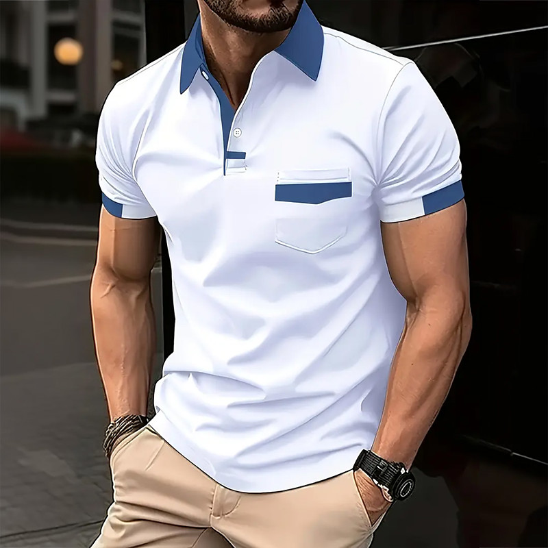Men's Plain Golf Shirt Short Sleeve Polo Shirts Lapel Business Casual Business Athleisure Holiday Pocket Buttons Summer White Blue Brown