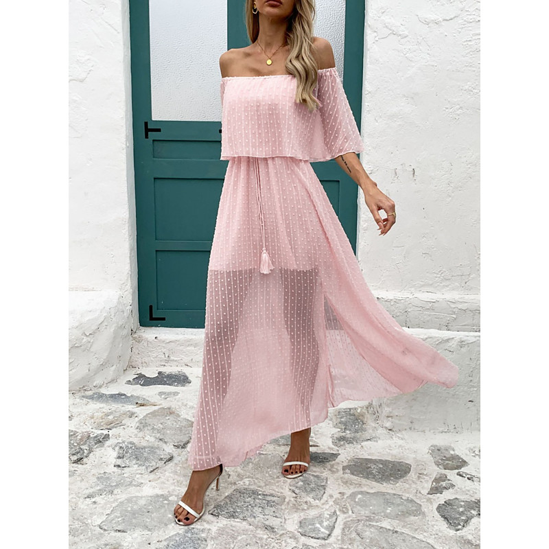 Women's Maxi Dress A Line Dress Summer Dress Casual Daily Regular Fit Plain Short Sleeve Off Shoulder Blue Pink Apricot Summer
