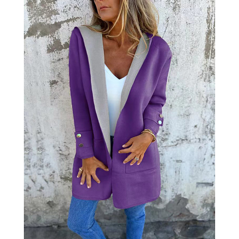Women's Winter Coat Coat Warm Comfortable Pocket Open Front Casual Plaid Vacation Street Casual Daily Wear Long Hooded Regular Fit Long Sleeve Outerwear Yellow Red Purple Spring Fall