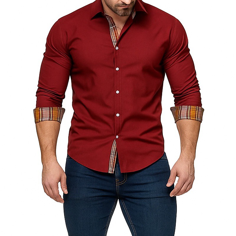 Men's Shirt Dress Shirt Button Up Shirt Plaid Casual Daily Black White Red Dark Blue Long Sleeve Turndown Spring Fall Clothing Apparel Patchwork
