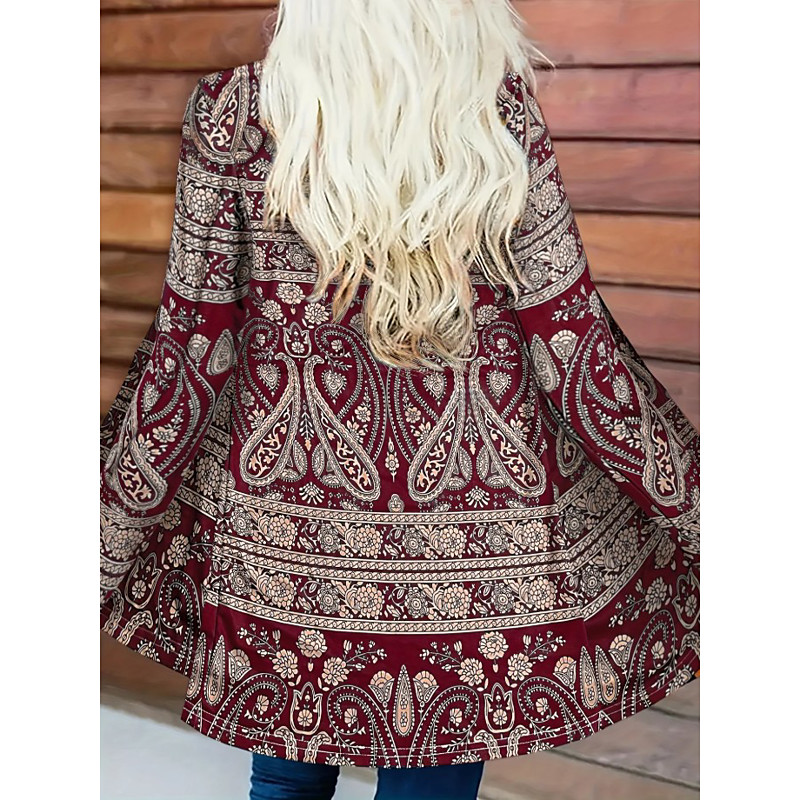Women's Casual Jacket Breathable Comfortable Patchwork Print Casual Floral Vacation Street Daily Wear Going out Open Front Regular Collarless Regular Fit 3/4 Length Sleeve Outerwear Black Green Dark