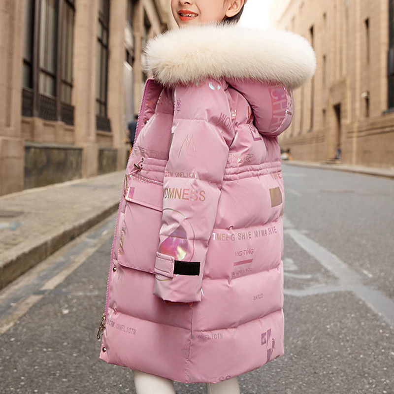 Kids Girls' Down Jacket Puffer Jacket Solid Color Sports Pocket Keep Warm Windproof Outdoor Coat Outerwear 4-12 Years Winter Black Pink Purple