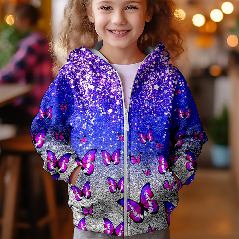 Girls' 3D Butterfly Hoodie Coat Outerwear Pink Long Sleeve Fall Winter Active Cute Streetwear Kids 3-12 Years Zip Street Daily Regular Fit