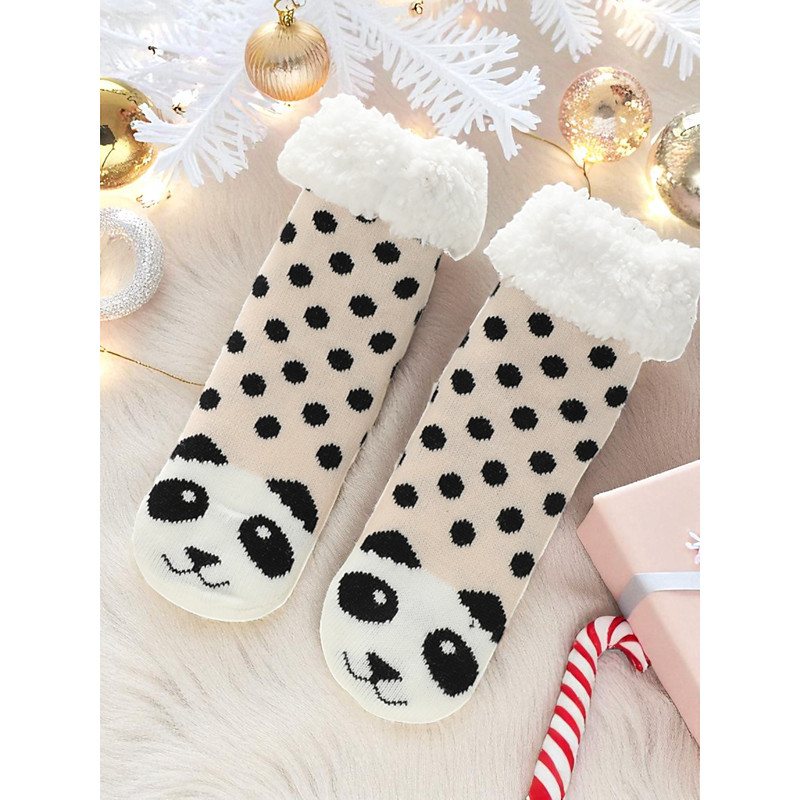 Women's Christmas Fuzzy Knit Socks, Red Reindeer Snowflake Pattern Warm Winter Slipper Socks with Plush Lining for Holiday Gifts Homewear