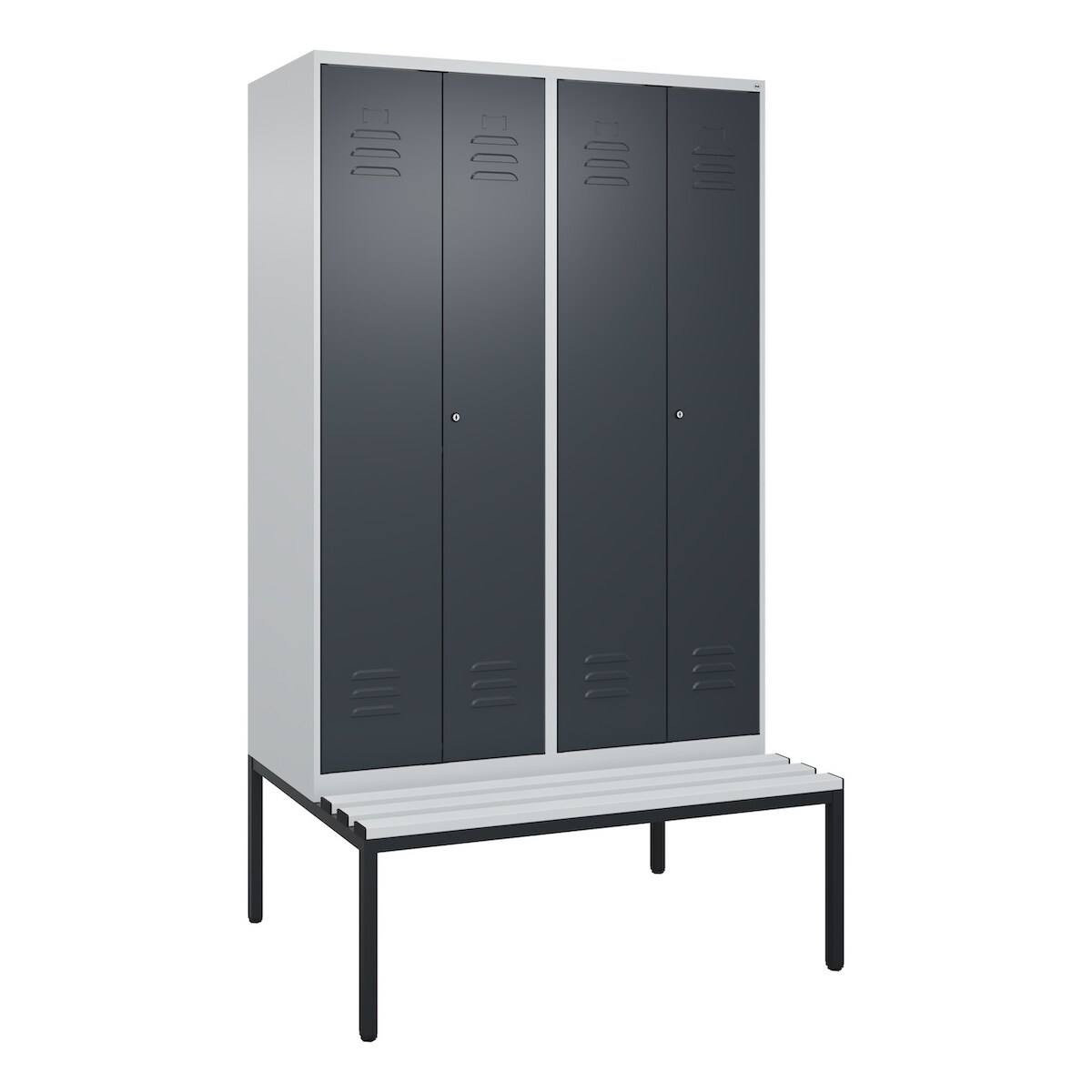 C+P Doppel-Spind Classic PLUS Kunststoff untergebaute Bank, 4 Abteile, HxBxT 212x120x82cm, Zylinderschloss, Hellgrau/Anthrazit von PROREGAL