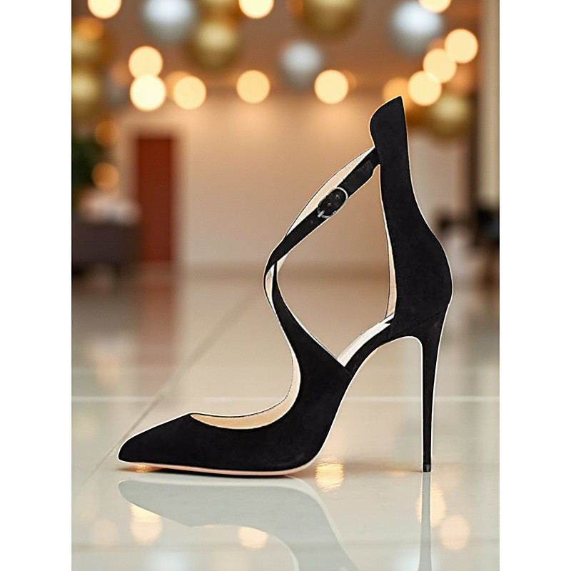Women's Black Suede Latin Dance Shoes – Open Toe Heels with Soft Suede Sole and Cross Ankle Straps for Ballroom, Salsa, and Performance Practice