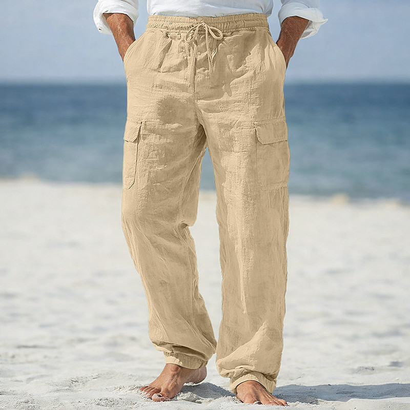 Men's Linen Pants Trousers Summer Pants Baggy Pants Beach Pants Drawstring Elastic Waist Multi-pack Solid Color Comfort Breathable Full Length Daily Beach Holiday Vacation Classic Style