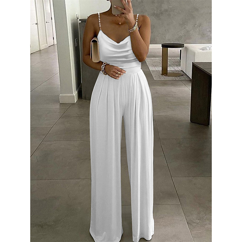 Women's Jumpsuit for Special Occasions Backless Solid Color V Neck Streetwear Street Holiday Regular Fit Strap Black White Gray S M L Spring Fall