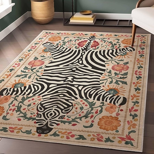 tappeto in velluto di cristallo in stile persiano, stampa di tigre tribale tropicale, arredamento per soggiorno e camera da letto, morbido e confortevole zerbino, tappeto decorativo unico per la casa