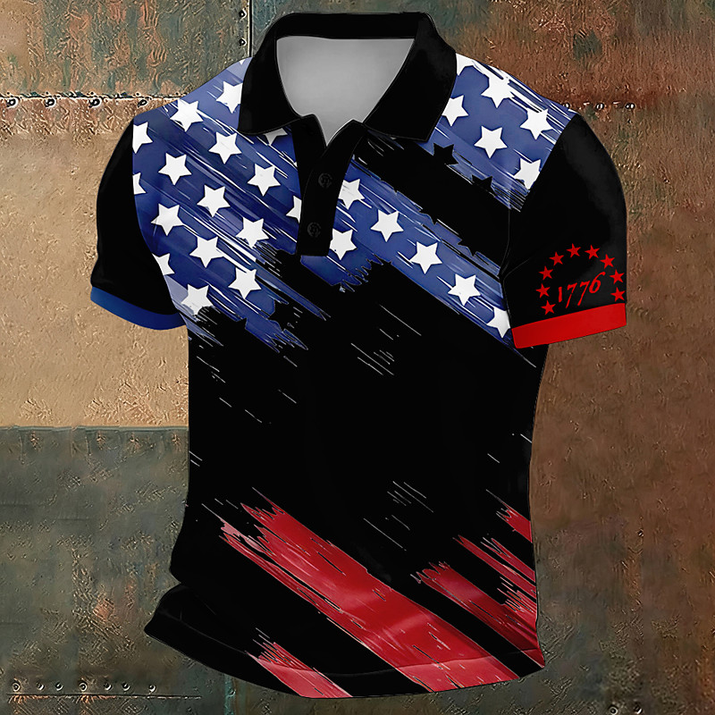 American Independence Day Men's American Flag Polo Short Sleeve Polo Shirts Lapel Casual Athleisure Festival Outfit 3D Print Buttons Summer Blue Black White