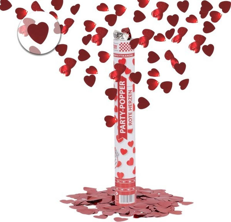 Konfettikanone Party Popper Rote Herzen - 1 Stück
