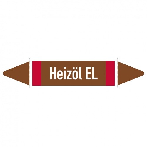 Aufkleber I Rohrleitungsetikett Heizöl EL, DIN 2403, braun/weiß/rot, f. Ø 60-90mm, 252x52mm, 3/Bogen I 4 Stk